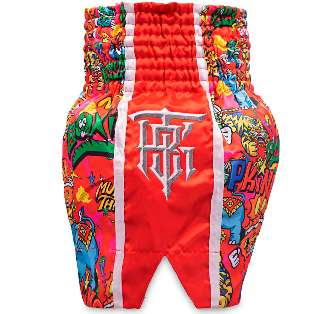 TOP KING х PUCK ШОРТЫ ТАЙСКИЙ БОКС КРАСНЫЙ МУЛЬТИКОЛОР